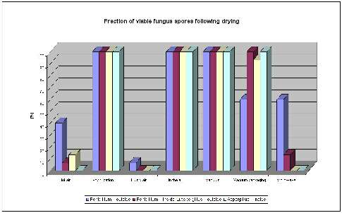 Fig. 4 Fraction of viable fungus spores following drying.